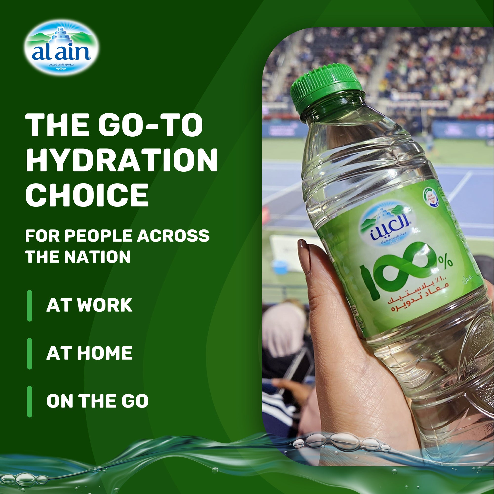 AL AIN WATER: With the right mineral balance, Al Ain bottled water is your ideal choice of hydration, offering reliable refreshment, revitalization, and nourishment for your body.